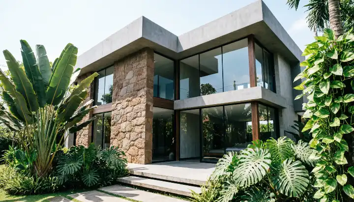 Desain rumah modern menekankan garis yang tegas, tampilan bersih, serta penggunaan material yang lebih kontemporer seperti kaca, beton, dan baja.