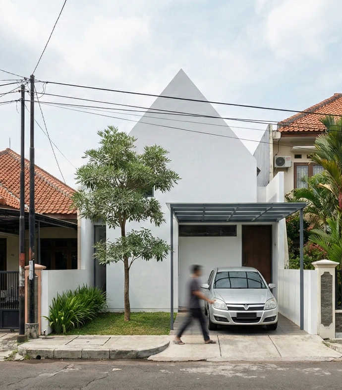 Ukuran 6 x 13 m perpaduan garis tegas, aksen kayu hangat, dan elemen hijau vertikal yang menghadirkan hunian modern yang tetap menyatu dengan iklim tropis.